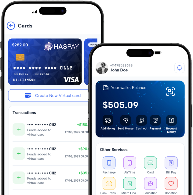 HAS Pay is a complete cross platform MFS solution designed for users, agents, and merchants. It includes mobile apps, a web platform, an admin panel, and virtual card integration to facilitate seamless financial transactions.